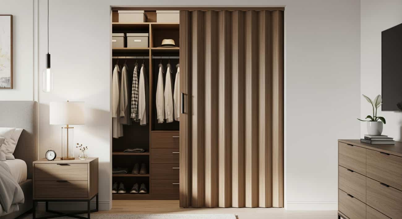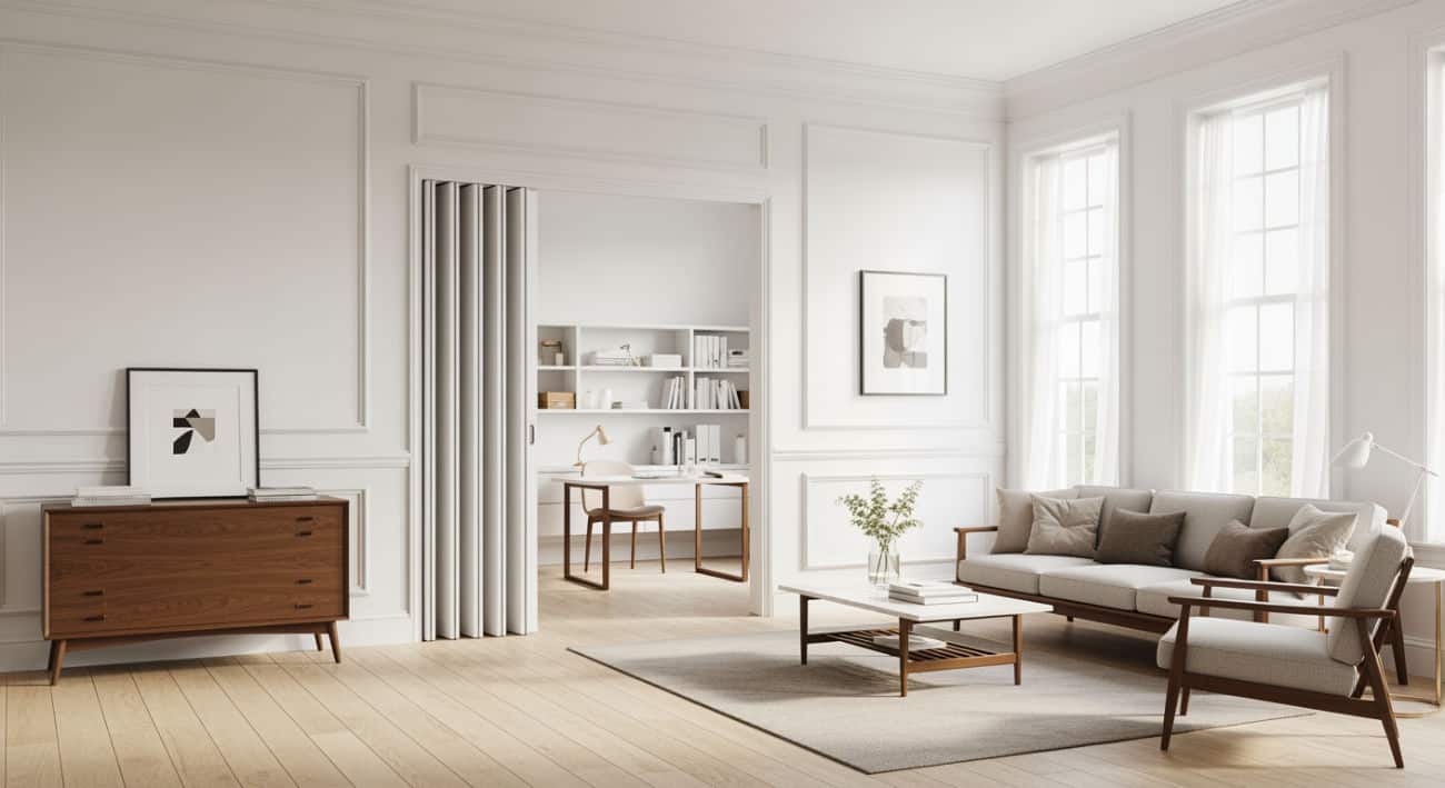 Custom accordion doors for residential and commercial spaces. Available in wood, vinyl, and acoustic options.