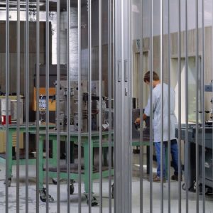 Acrylic folding door system for security and visibility applications.