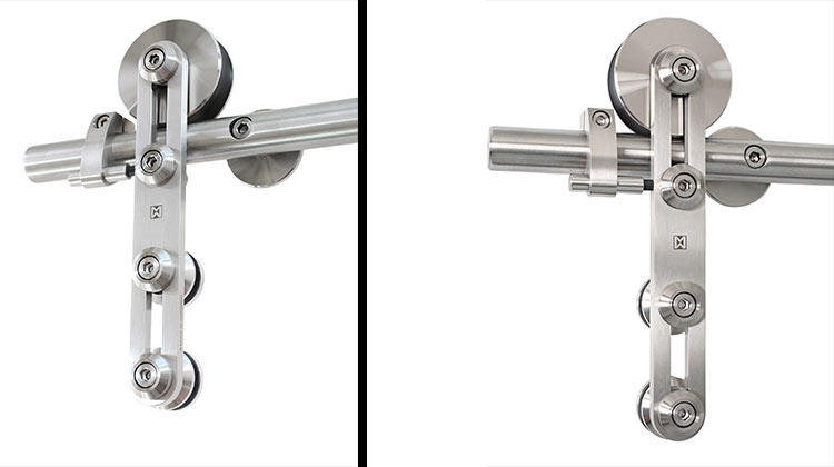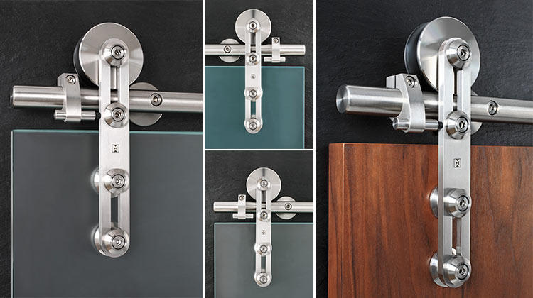 Kit includes: solid stainless track, wallmounts, 1 pair of hangers, 1 pair of track stops, bottom guide and installation instructions.
