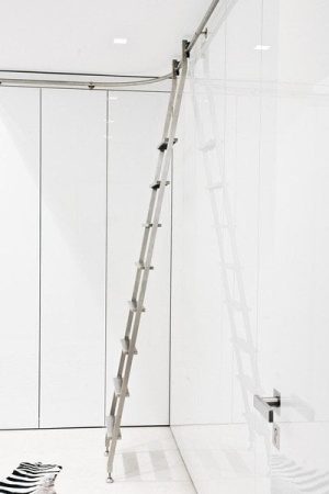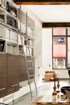 The SL.6002.AK Akzent Sliding Ladder features a sharper profile but the same features as a sliding library ladder. Stainless steel construction, smooth rolling action and an eye-catching design.