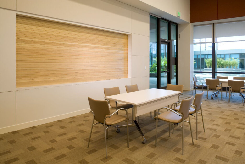 Woodfold interior Roll-Up Doors are not only gorgeous to look at; custom building assures their consistency, precise fits and tolerances. Our doors’ reliability and smooth operation depend on our attention to details, such as using aircraft grade stainless steel cables to tension the assembly for seamless continued operation.